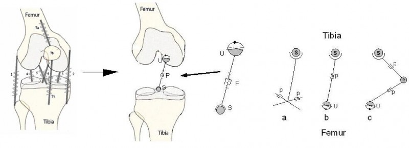 For our Biomechanics work we use advanced kinematics tools for the description and analysis of motions. We describe the momentary kinematics axis of the knee using momentary screw parameter. The screw axis along with its associated pitch provides vital information regarding the specific knee behavior, and enables to perform biomechanical analysis of the joint in higher dimensional mathematical spaces. |