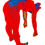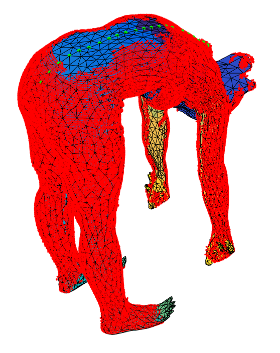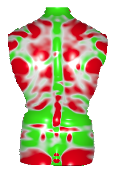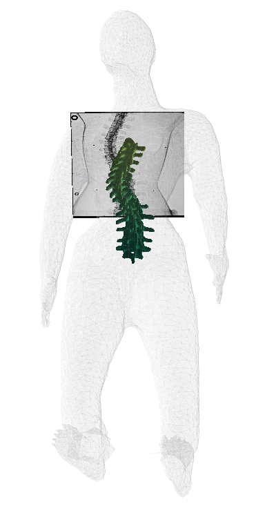 Accurate measurement of spine position is important in various medical contexts, ranging from diagnosis and treatment of scoliosis to prophylaxis or rehabilitation of pathological locomotion. For research, having an accurate measurements of spine position, especially in various postures and movements, could be instrumental in understanding human kinematics. Unfortunately, current imaging modalities are not able to provide this information, or carry oncological risks that proscribe excessive scanning. For example bi-planar radiographs or computed tomography (CT) can provide faithful renditions of spine structure but involve ionizing radiation. Magnetic Resonance Imaging (MRI) provides a non-invasive (non-ionizing) alternative, but requires the subject to be immobilized, typically supine. This is problematic when assessing scoliosis, where load-bearing posture is preferred, and makes dynamic analysis impossible. Therefore it is desireable to have a non-invasive imaging system capable of measuring spine structure in self-supported postures, preferably in real time. To meet this need, we are working to develop statistical models capable of estimating vertebral positions using optical surface scans. |